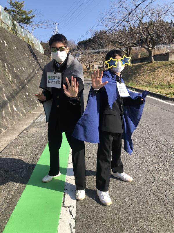 あいさつ仮面に負けないくらい元気なあいさつができるよう、今後も子ども達には声を掛けていきます。