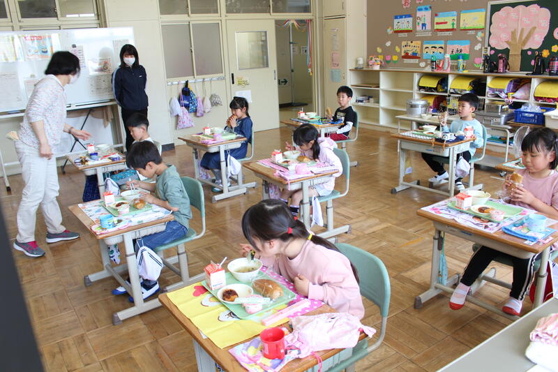 この後は、はじめての・・・給食です。とても楽しみですね。