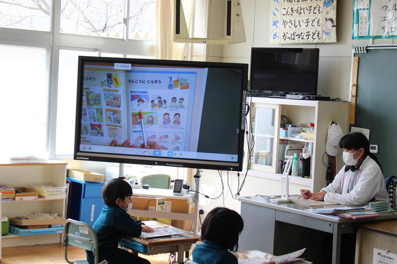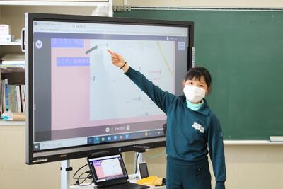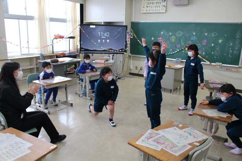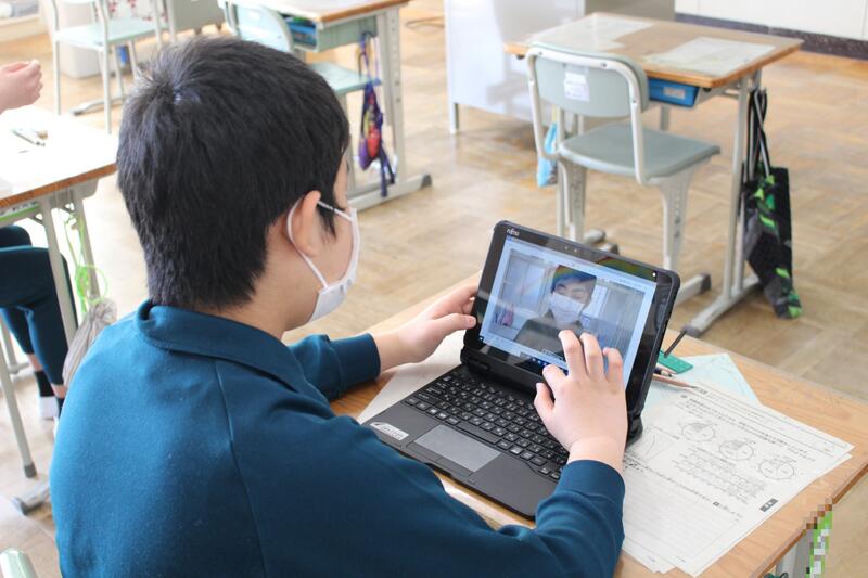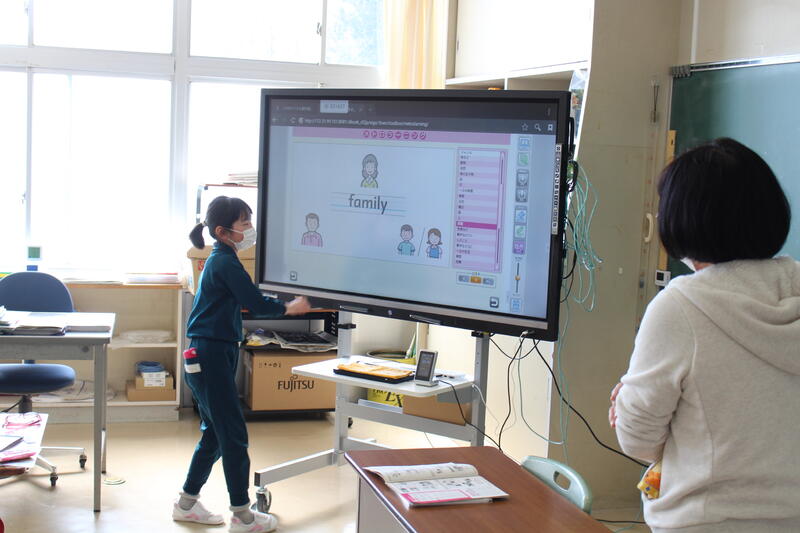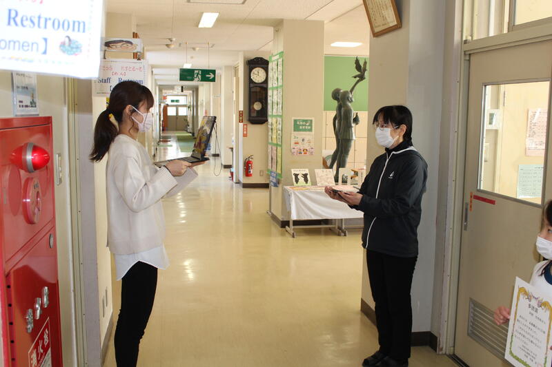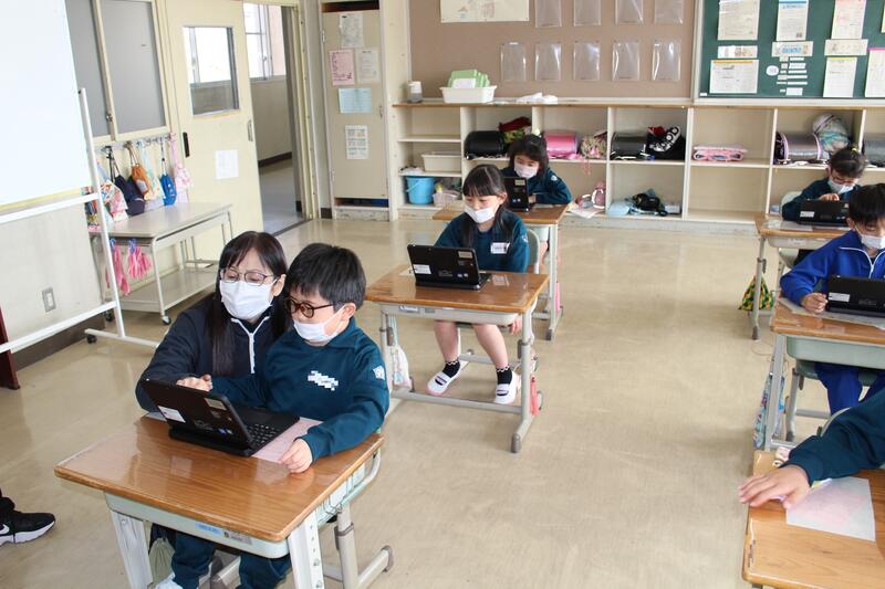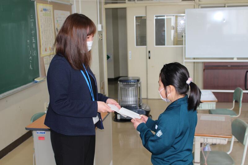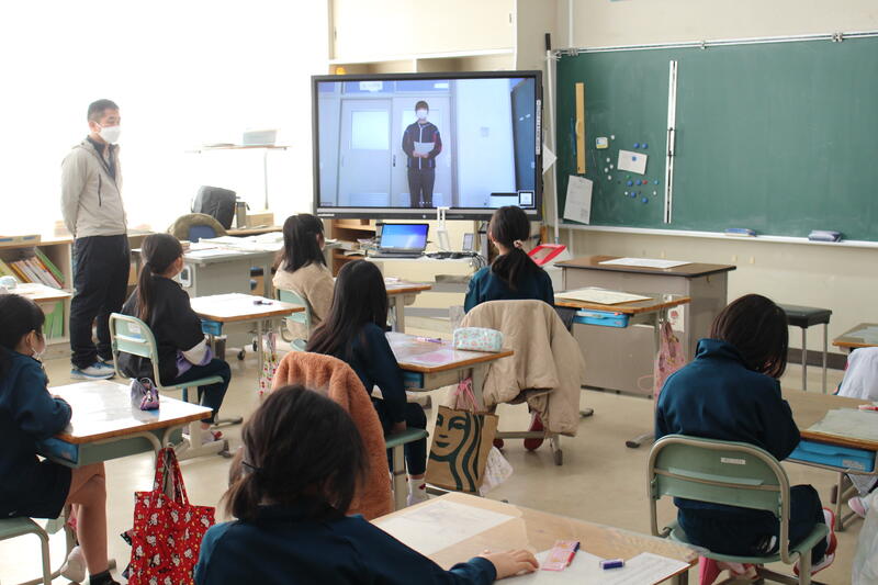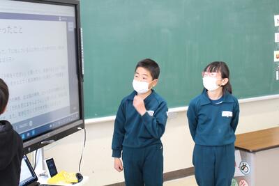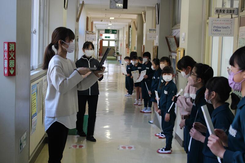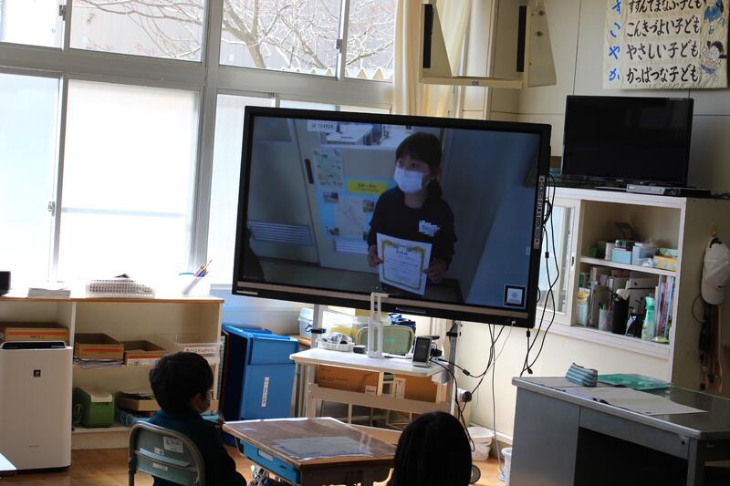 今年度、本校のICT活用のレベルアップにご尽力くださったICTサポーターの先生も、本日が勤務最終日。全校児童を代表して、2年生が感謝の心を伝えました。