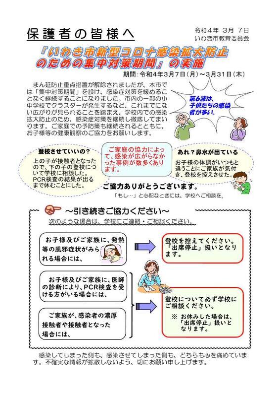 これを受け、いわき市教育委員会より通知がありましたのでお知らせいたします。