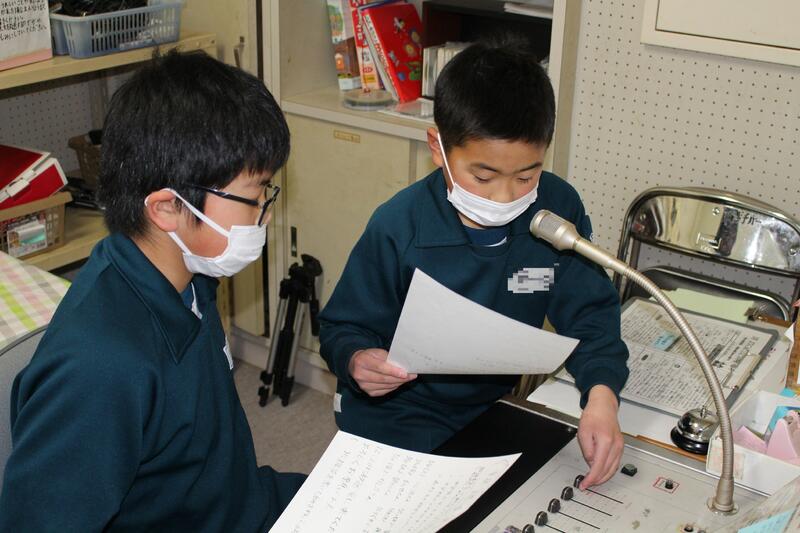 お昼の放送が始まりました。なんと、本日から放送委員会の新企画「6年生にインタビュー」が始まりました。