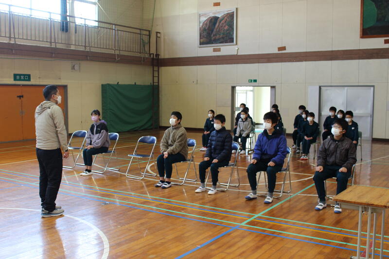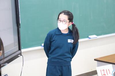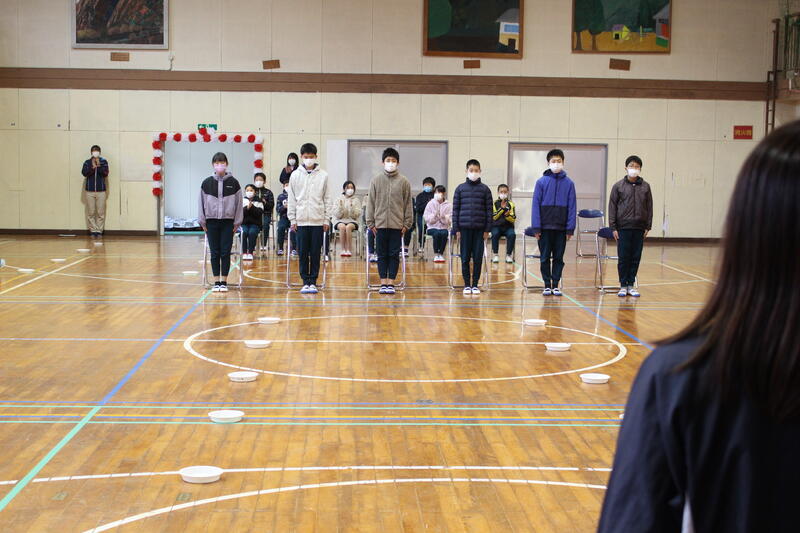 6年生に「中学校に行ったらどんなことをしたいですか」などの質問をしていきます。その質問に、丁寧に答える6年生。さすがですね。
