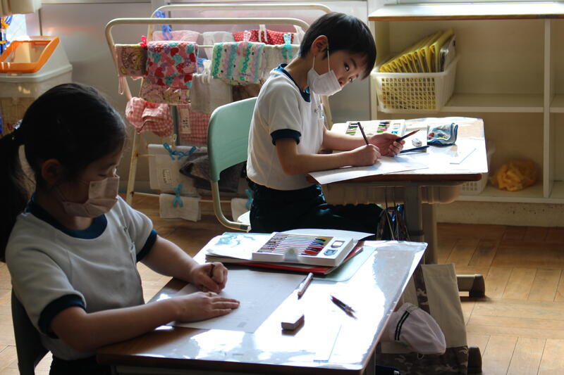 <3年生>うまく色がのってます。最後まで丁寧に。