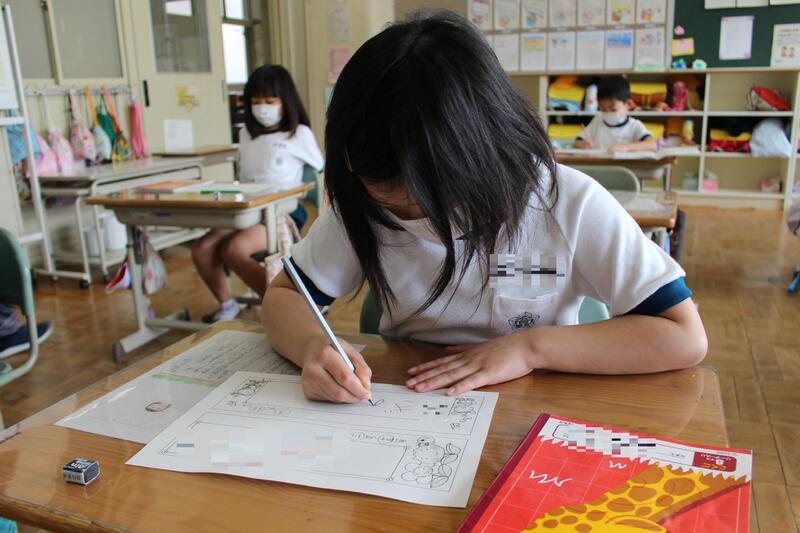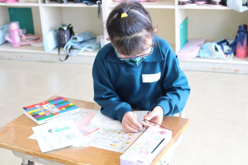 <1年生>上手に「思い出アルバム」をつくっていました。