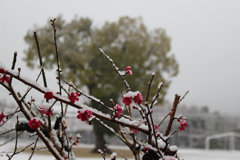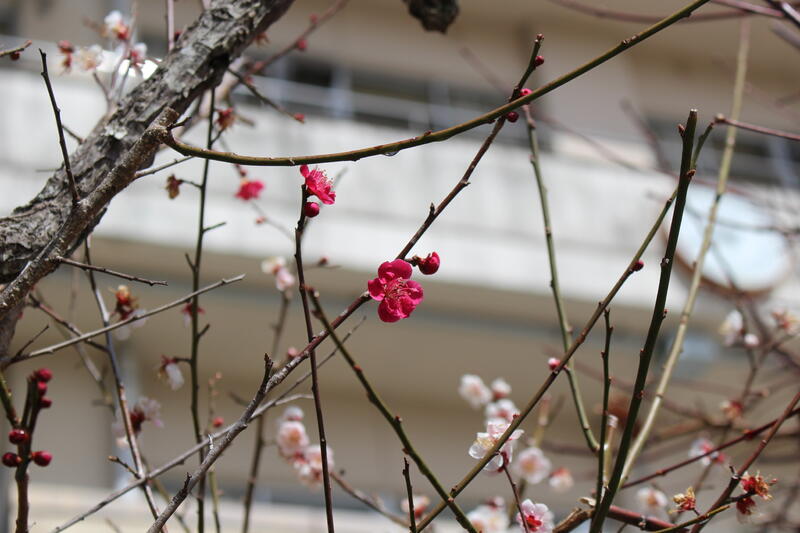 校庭の梅の木に咲く花の数が、日に日に増えてきました。なんだかワクワクしてきますね
