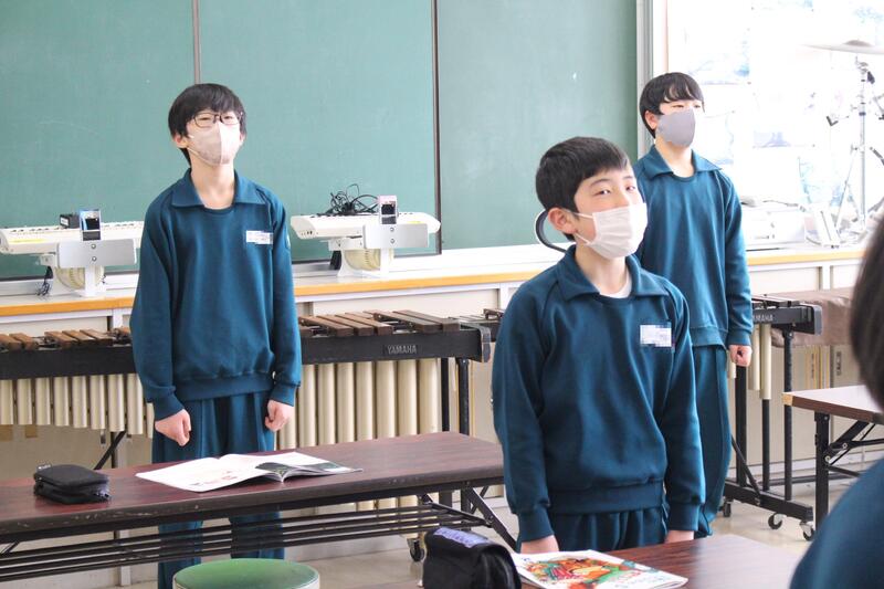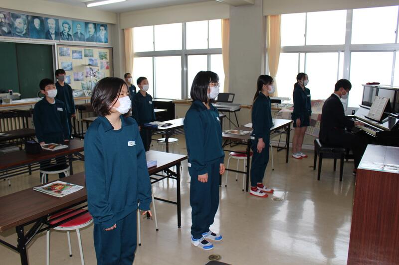 内郷三中の音楽科の先生に歌唱指導や伴奏を行っていただき、声は控えめですが心が伝わる式歌にしていきたいと頑張っています。