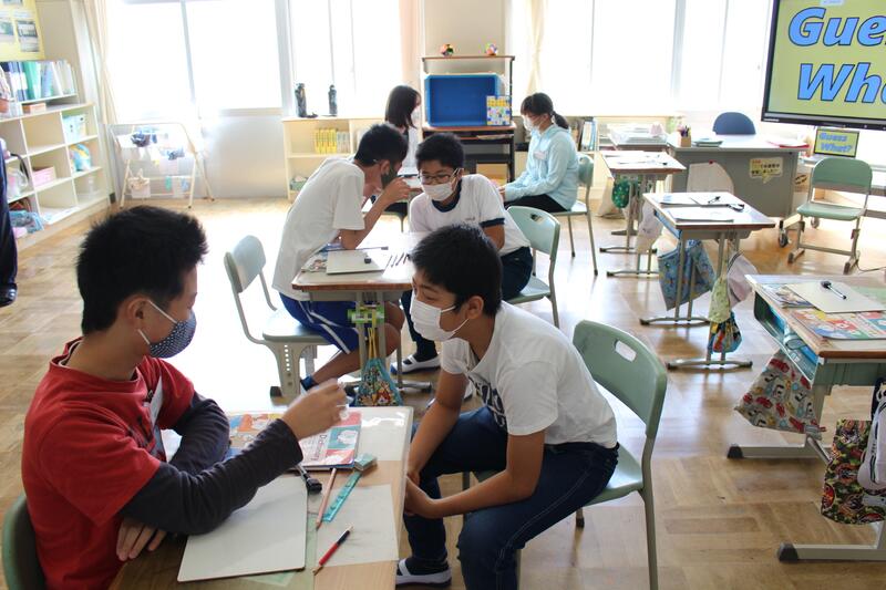 この取組は、小学校外国語科から中学校英語科へのスムーズな移行を目的とし、中学校英語科の先生と小学校6年の担任の先生、そして小学校外国語科担当の先生が中心となって授業づくりに取り組んでいるものです。