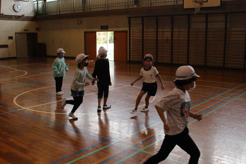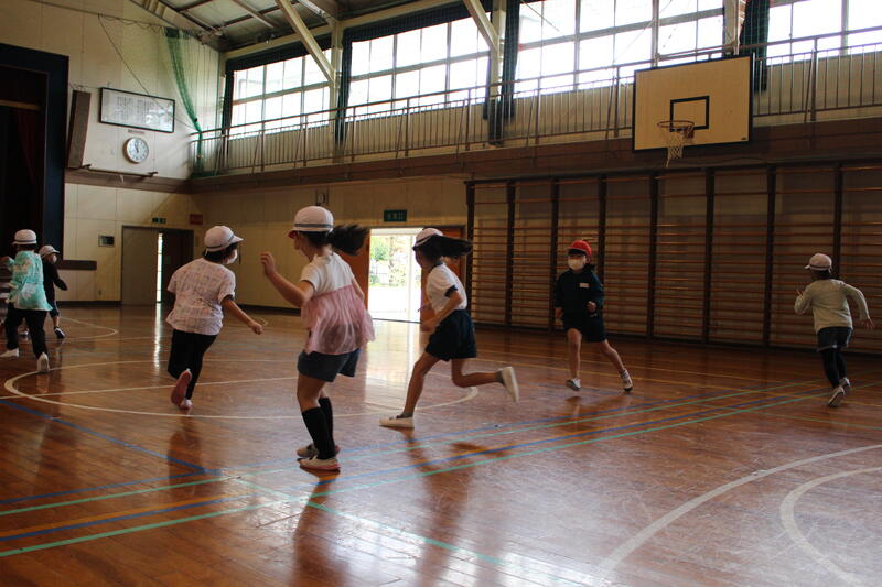 体育館では、2年生が体育科の学習中。何だか楽しそうに活動しています。運動不足になりがちですので、たくさん運動してくださいね。