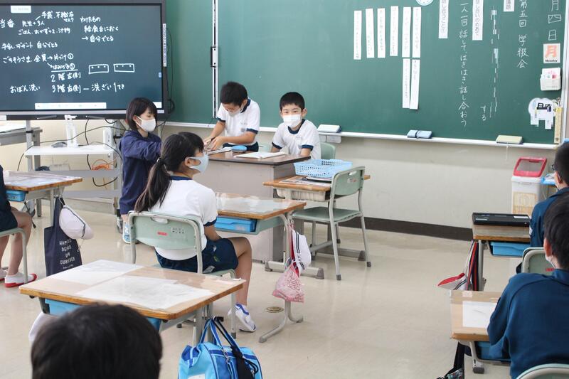 5年生は学級会のようです。議題に対して自分の考えを積極的に発表し合う姿、立派ですね。