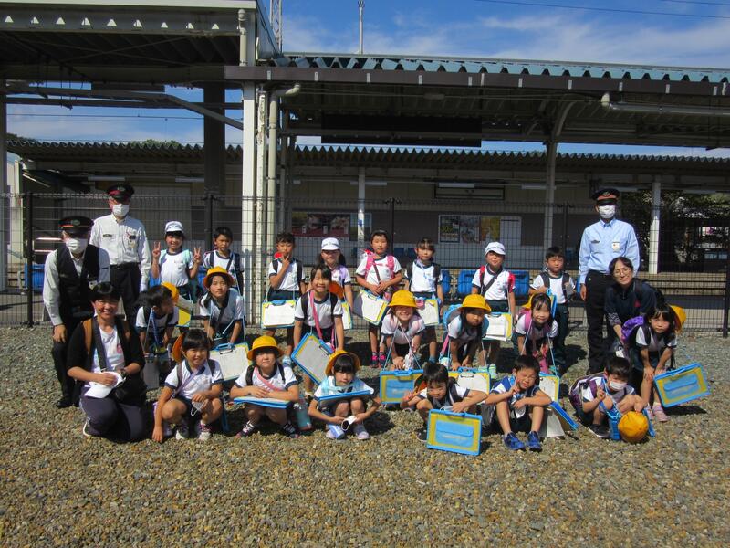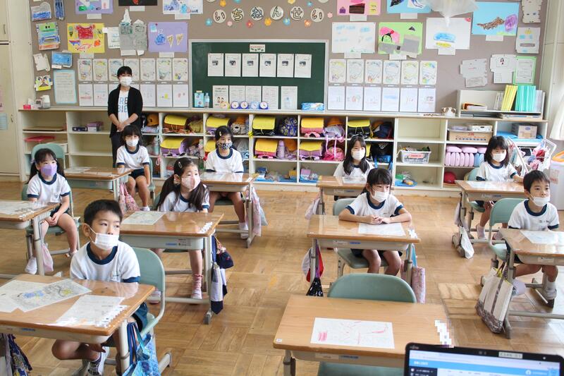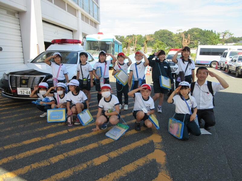 本日は、待ちに待った1~3年生の見学学習の日です。学校に残る先生に出発のあいさつをして、Let's go!!