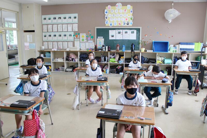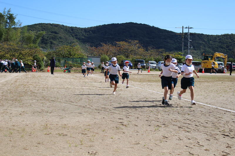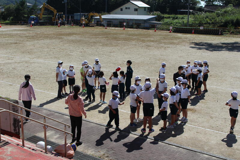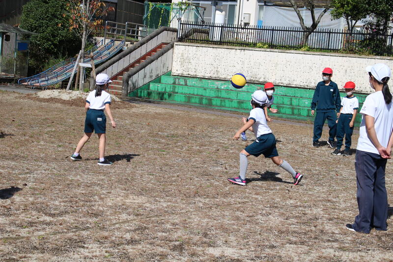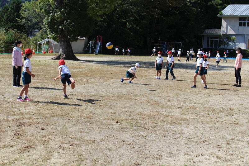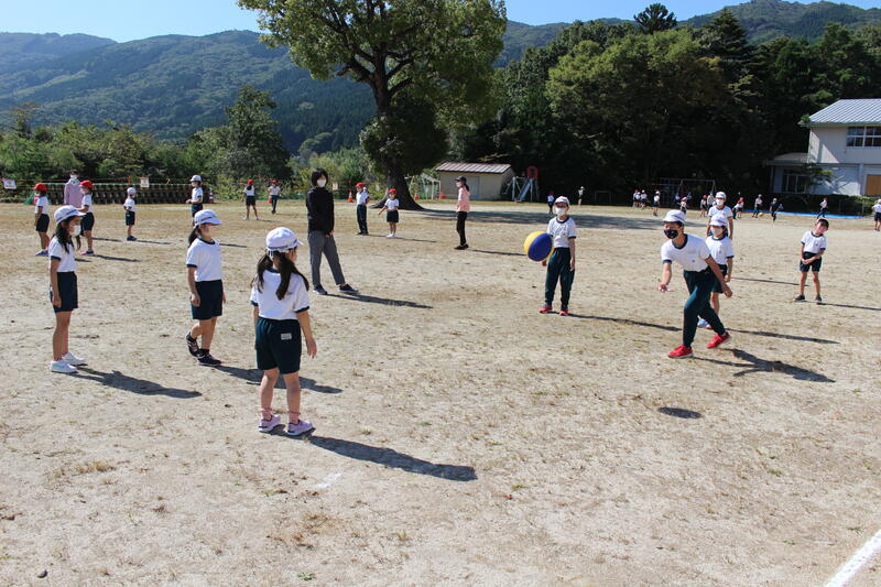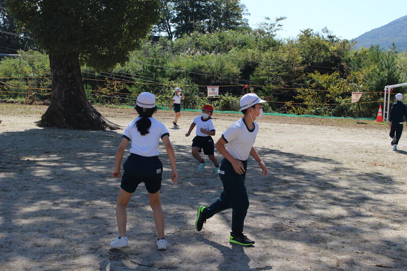 秋とは思えない強い日差しの大休憩。全校児童が元気に校庭で活動しています。