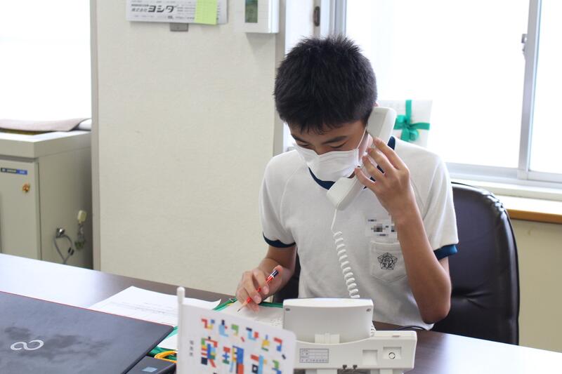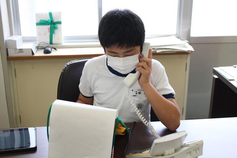 6年生は全員、電話での問合せが初めてのようで、緊張しまくり。当然ですよね。仲間や担任の先生に見守られながら、いざコール!!