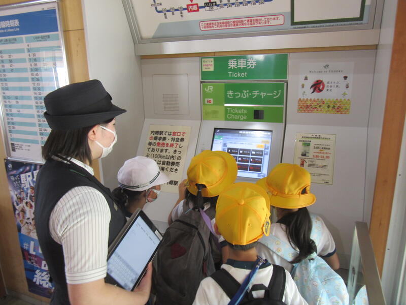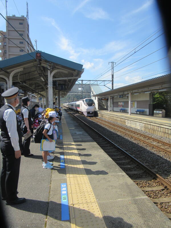 1・2年生は内郷駅へ向かいました。駅の中を隅々まで見せていただくとともに、丁寧に質問にもお答えいただきました。ラッキーなことに「特急ひたち」も通過し、子どもたちはその速さに驚いていました。