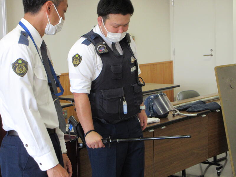 時を同じくして、3年生はいわき中央警察署へ向かいました。はじめに警察官の方から様々な装備を見せていただきました。ドラマや映画でしか見たことのない道具を目の当たりにし、子どもたちの目が輝きます。
