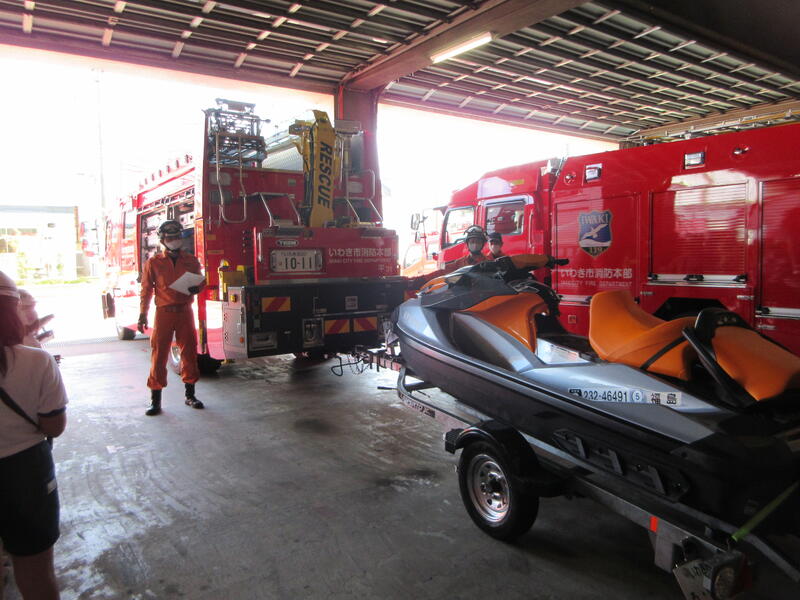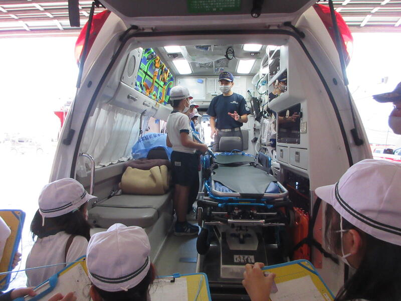 続いて、平消防署に向かいました。消防署では、救急車や消防車について詳しく説明していただきました。