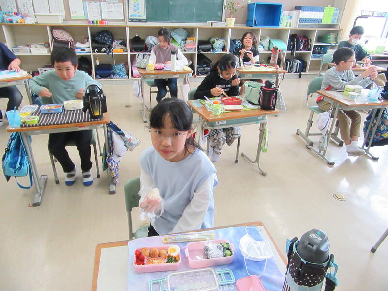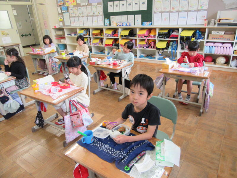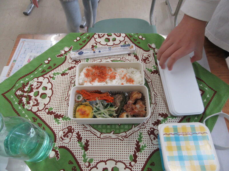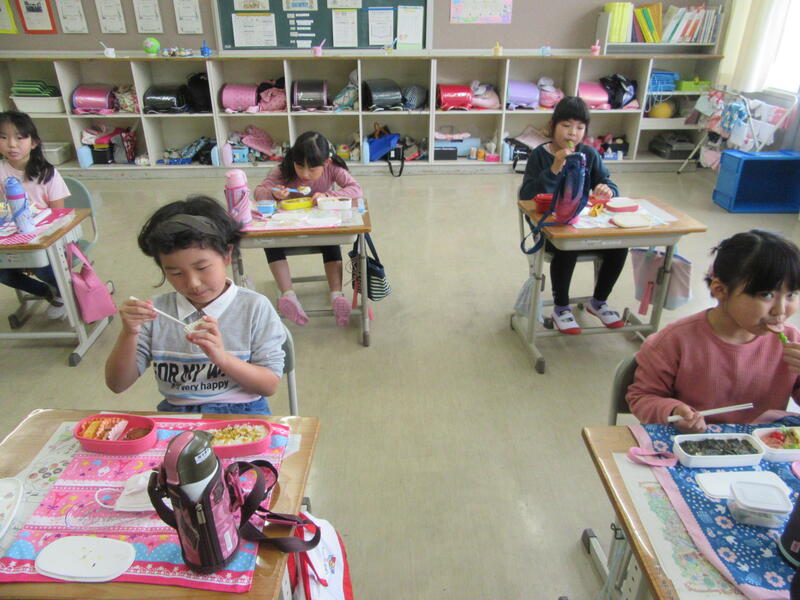 本日は午後から就学時健康診断があるため、学校でお弁当を食べて集団下校となります。それに合わせ、本校では「ふれあい弁当デー」を実施しました。
