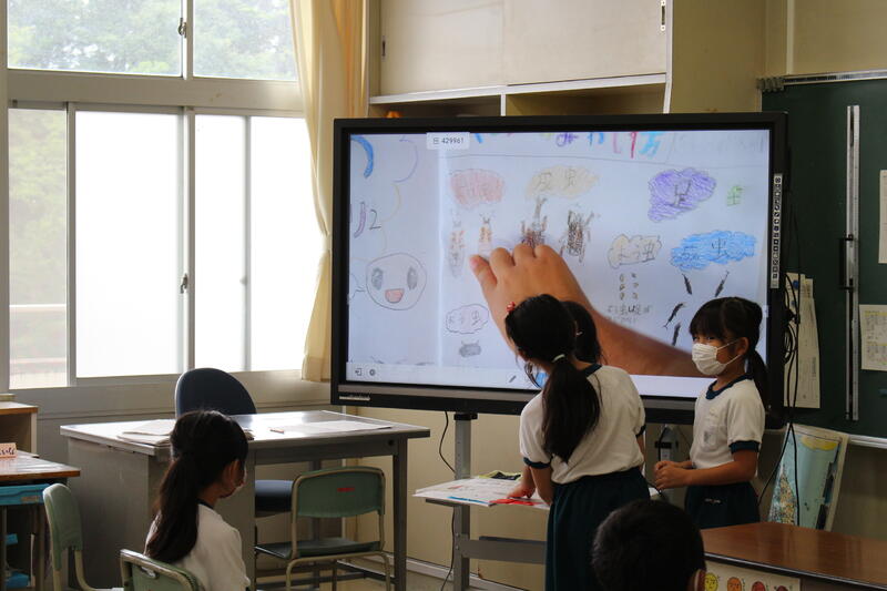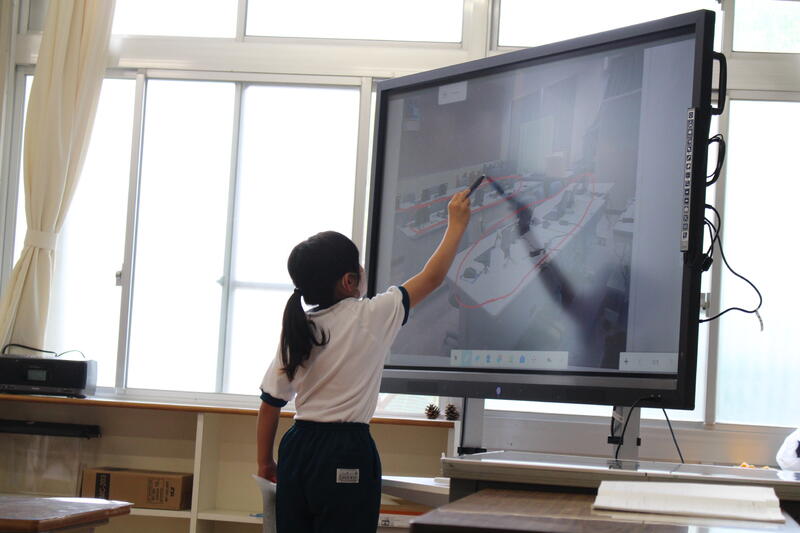 3年生は社会科の学習です。スーパーマーケットの商品はどこから来るのかを学んでいます。「国産の高級しいたけと外国産の安いしいたけ、どっちを買う?」との問いかけに、「安いしいたけ。高級なのは贅沢だよ。」と子どもたち。しっかりしています。