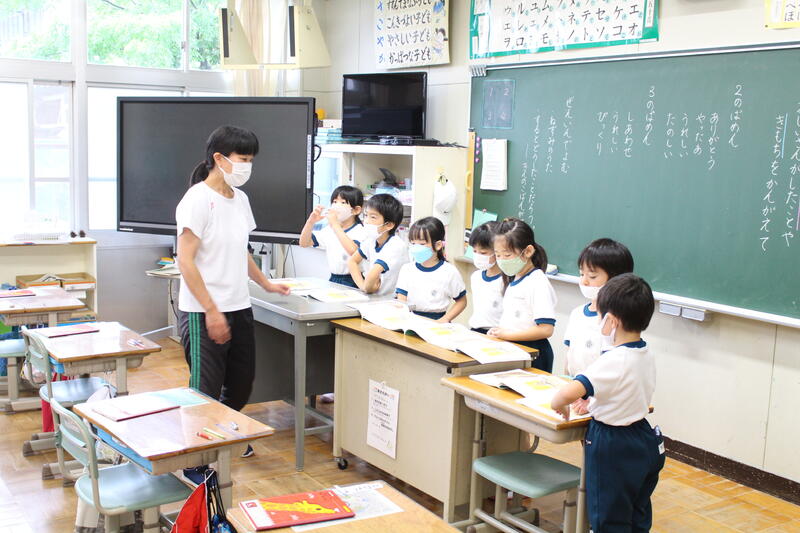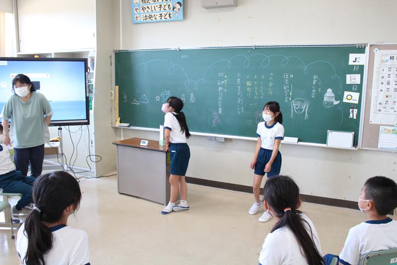 「おむすびころりん すっとんとん!」1年生の教室から元気な声が聞こえてきます。
