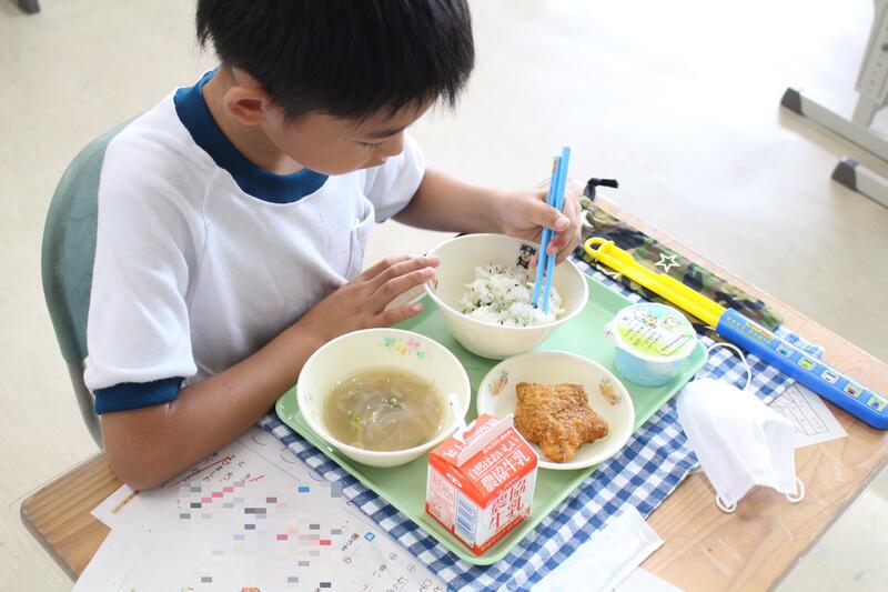 2年生は楽しく給食をいただいています。本日は「七夕献立」です。星形のフライや七夕ゼリーが出されて、みんな嬉しそう。しっかり食べて、梅雨空を吹き飛ばせ!!