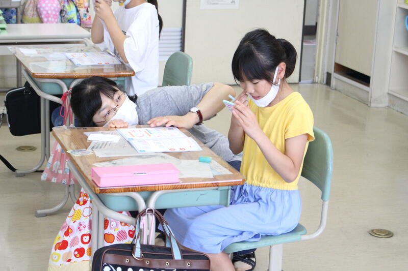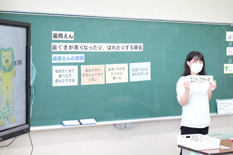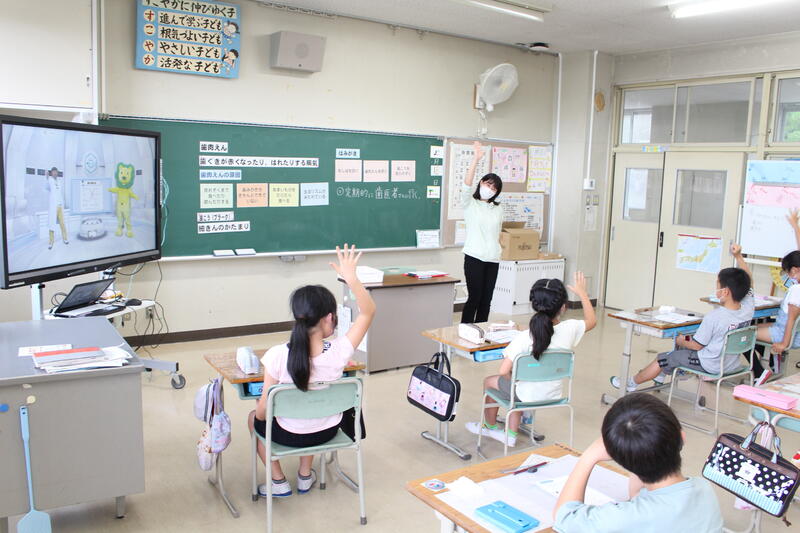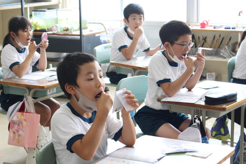 正しい歯みがきの仕方やデンタルフロスの使い方も学び、これから始まる夏休みにはしっかり歯みがきをしようと決意を新たにした4年生でした。