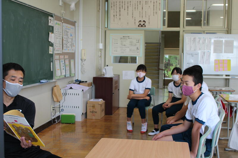 また、すこやかタイムでは、本日より来校くださることとなった「読書サポーター」の先生からお話がありました。