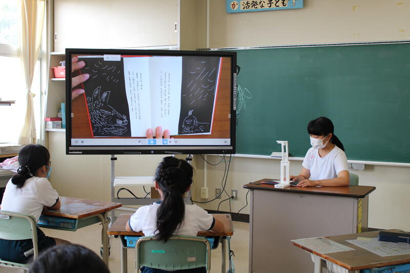 今朝は「教職員による読み聞かせ」の日です。本校では読書活動の推進に向けて、毎月行っています。