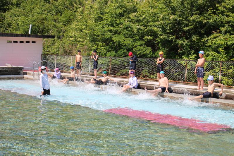 今年度は、小学生用にプールに入れた水位調整台の台数が大幅に増えました。これにより、中学生用のプールでの水泳学習がより安全になったとともに、適切な距離を保って学習を進めることができます。プールの水のようにキラキラ輝く笑顔がいっぱいの水泳学習となりました。