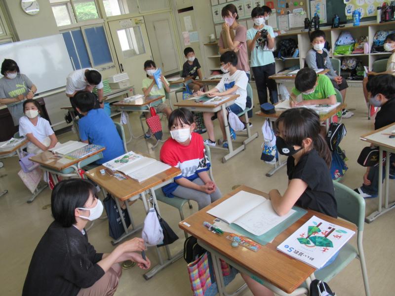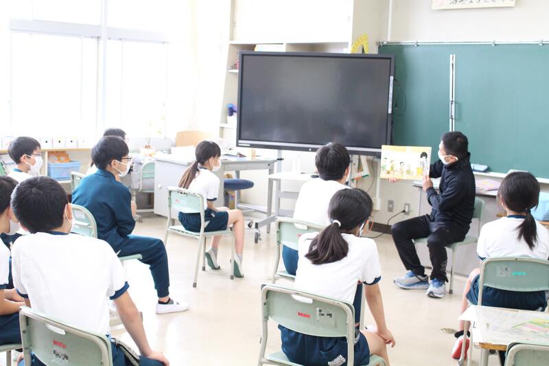 1年生は国語科「おおきなかぶ」の学習です。今回はいよいよ音読劇です。演じる方も観ている方も大興奮。楽しい雰囲気の中、学習のまとめを行っていました。