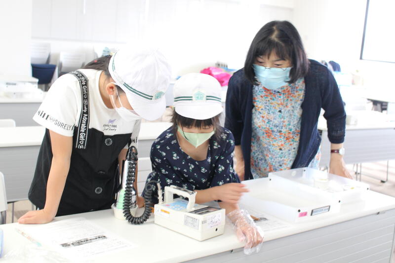 体験研修では、放射線測定器を用いて身の回りにあるものから放射線が出ていることを確認し、自然放射線の存在について学びました。