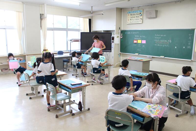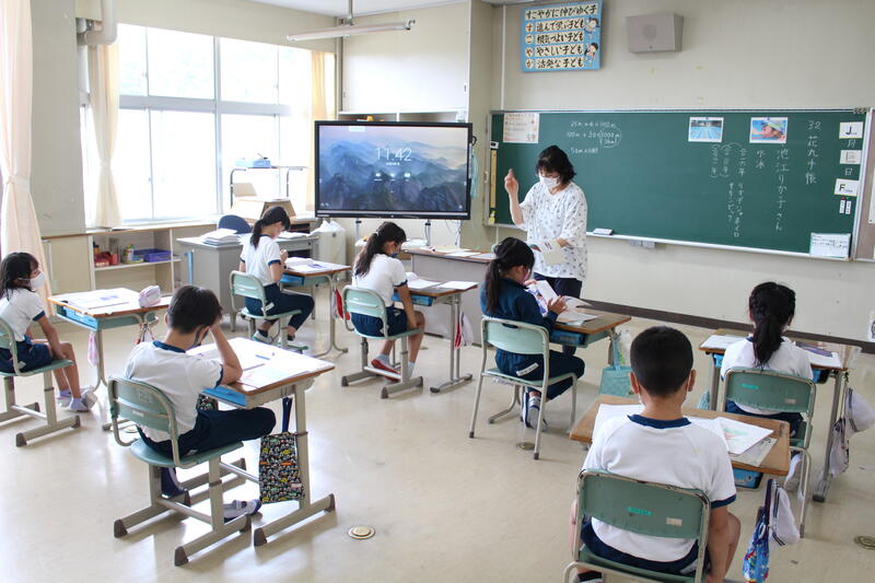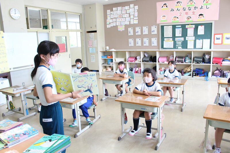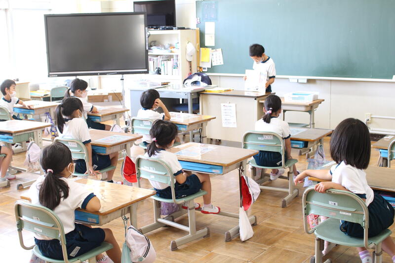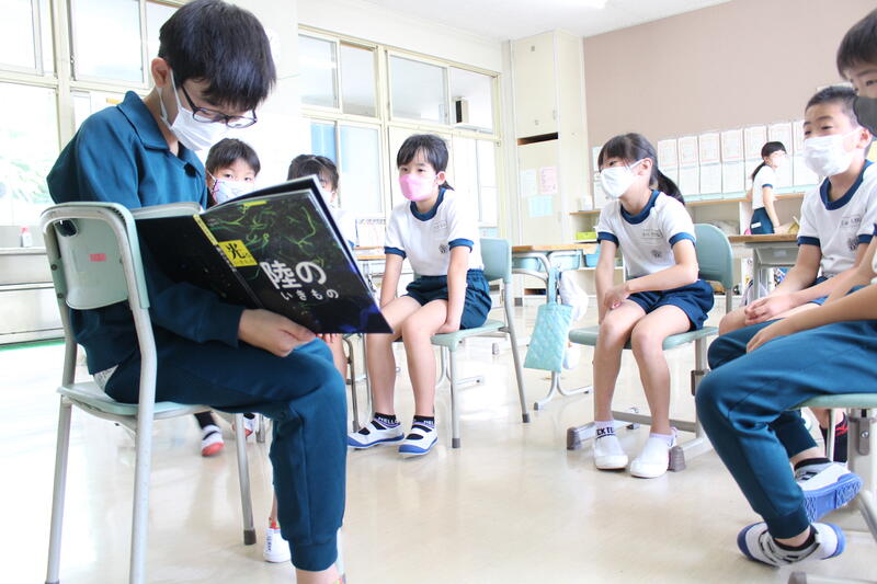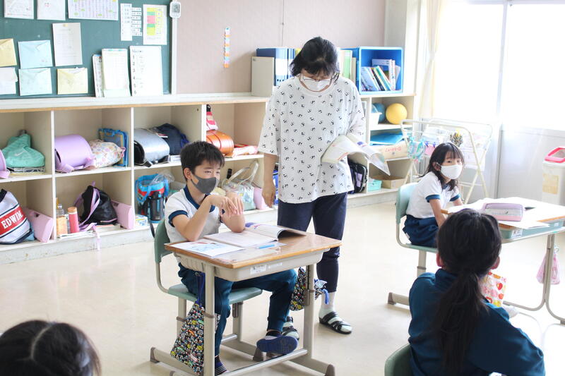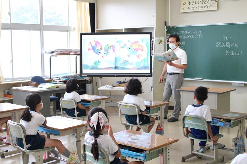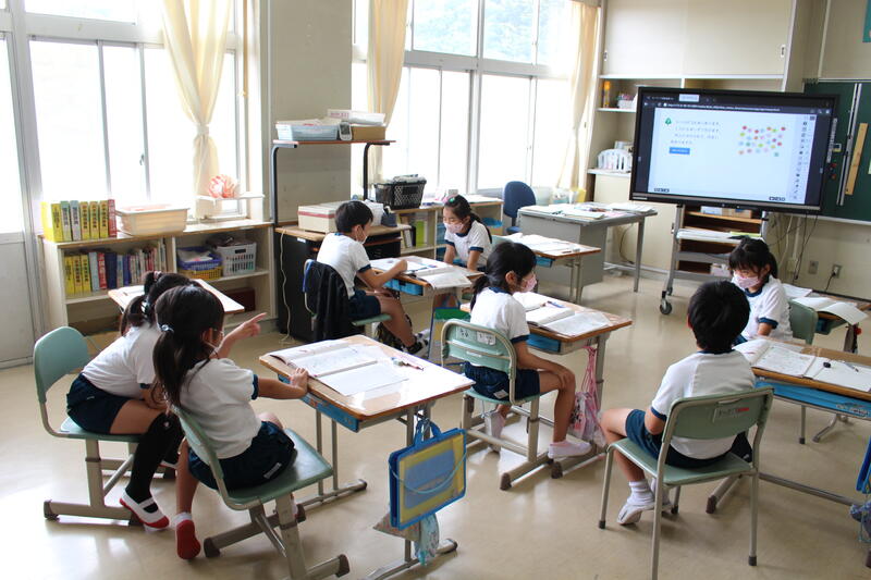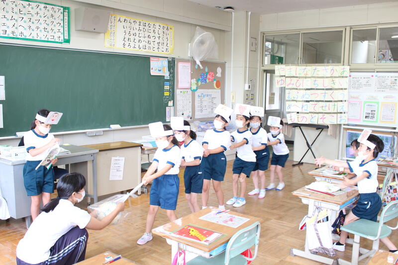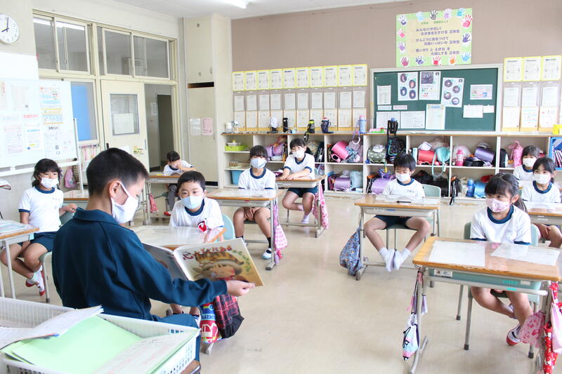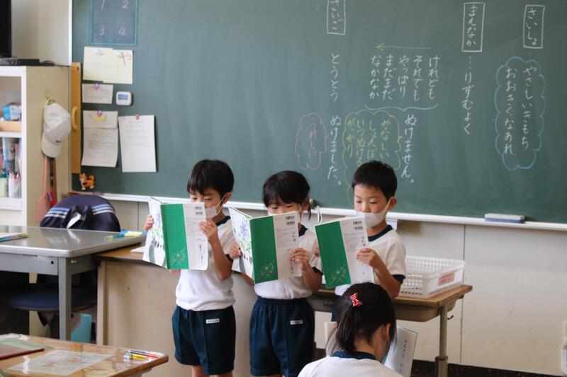 1年生は国語科の学習で「おおきなかぶ」の学習です。本日は、グループで音読を行っていました。入学してから3ヶ月、音読も大変上手になりました。