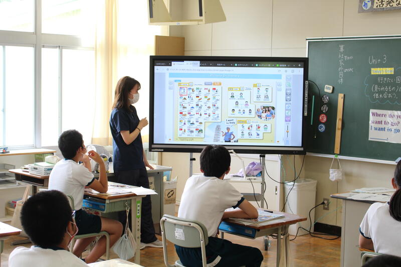 6年生は外国語科の学習です。6年生ともなるとレベルがアップし、自分のおすすめの外国の名所を紹介するようです。まずはネイティブの発音を聞いてみます。パリにある有名な塔が「The iPhone tower」と聞こえるようです。普段自分たちが使っている和製英語とネイティブの英語の違いに驚いている6年生でした。