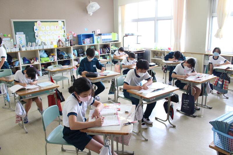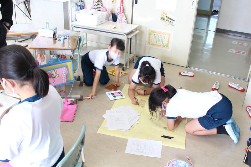 3年生は総合的な学習の時間のようです。何やら学習したことをまとめているようです。何ができあがるのか楽しみですね。
