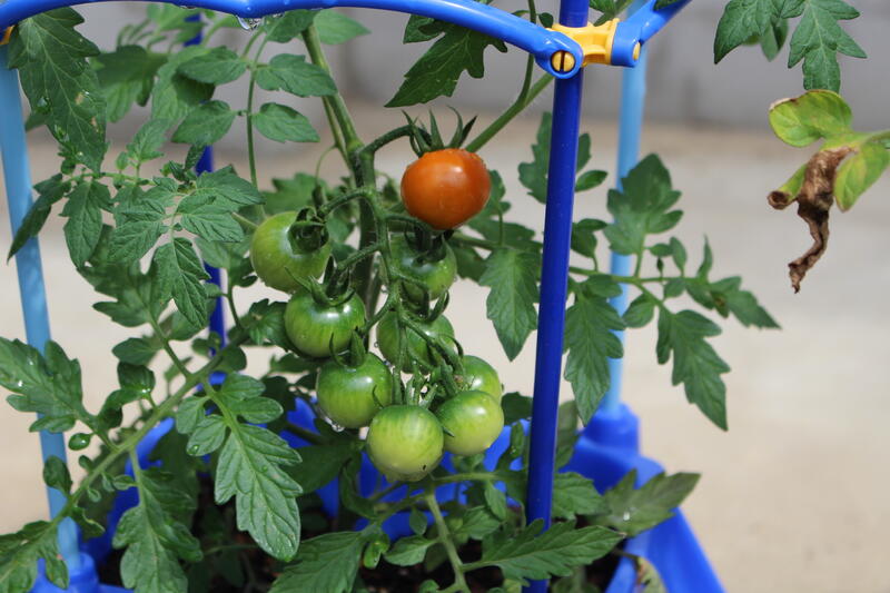 2年生が育てているミニトマトもしっかりと実をつけ、中には赤くなってきたものもあります。高野っ子と同様に、ミニトマトも日々着実に成長しています。
