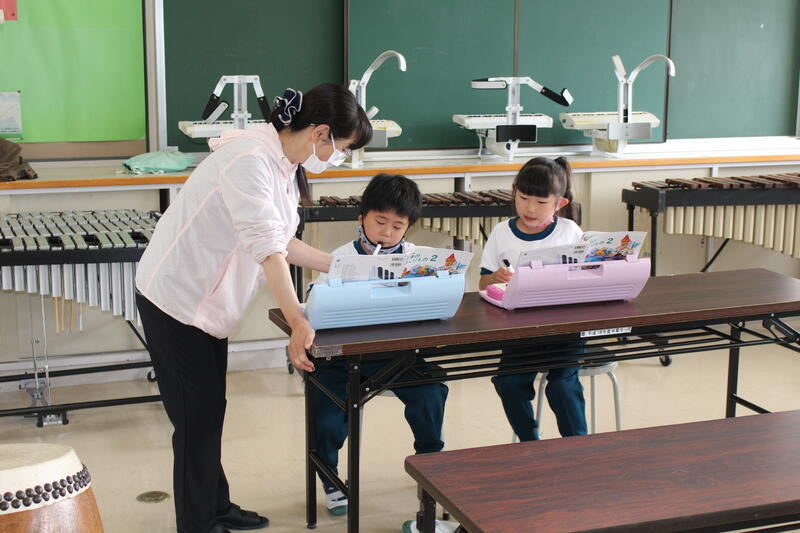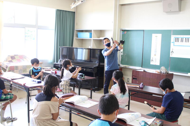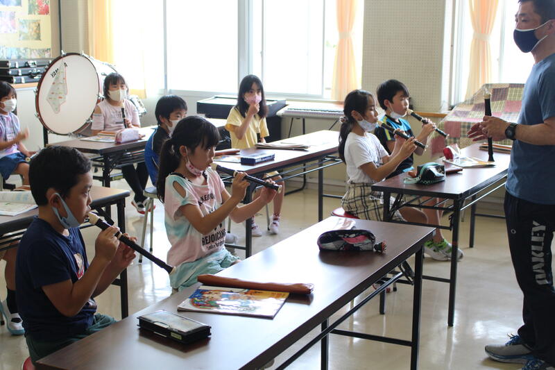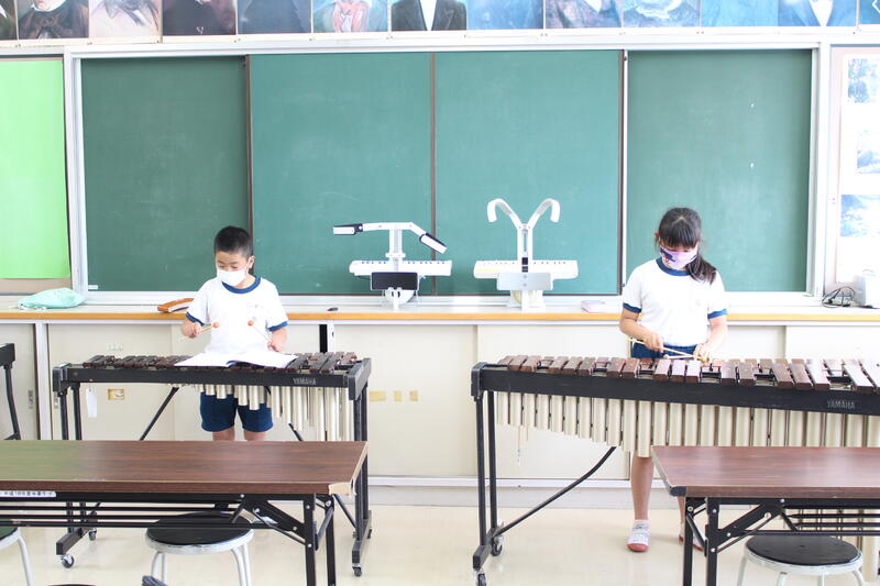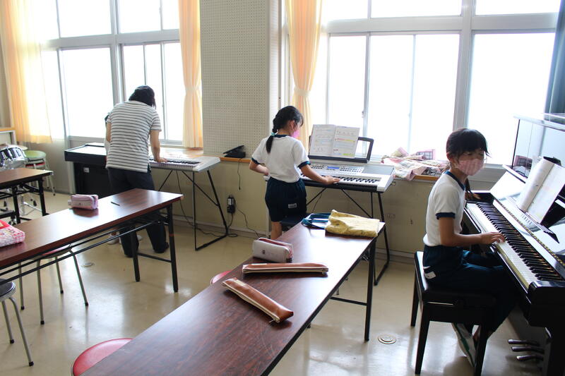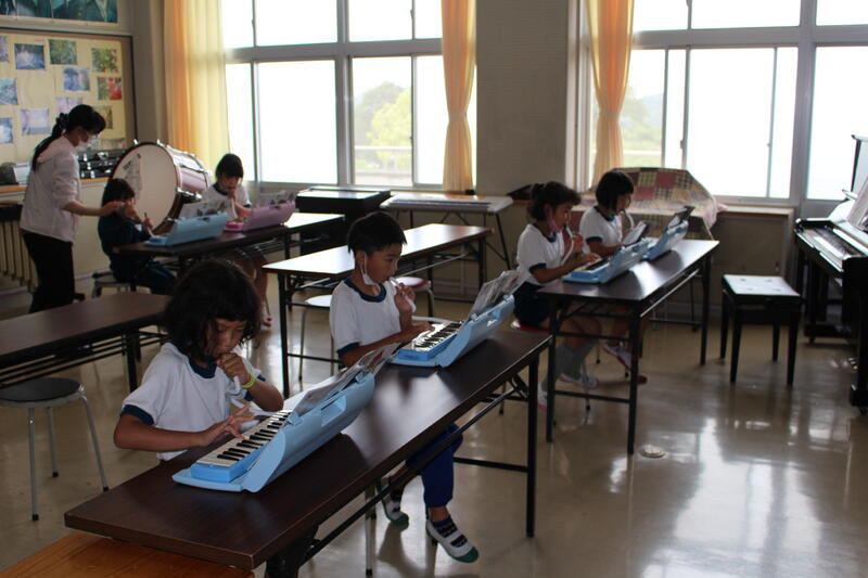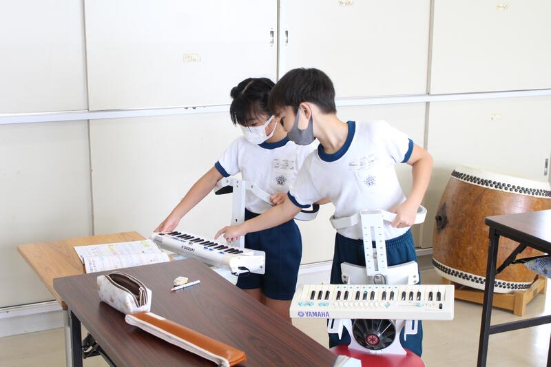 2年生は音楽科の学習。感染レベルも下がったので、鍵盤ハーモニカでの学習もできます。たくさん練習して、上手に演奏しよう。