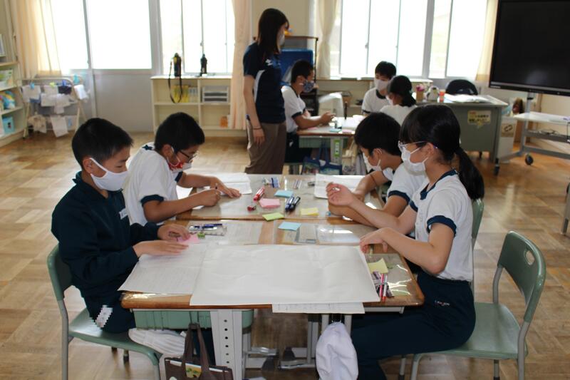 6年生は国語科の学習でした。環境問題等についての資料を集め、提案文として何を書くかを話合っています。さすがは6年生、自分たちで話し合いを進めていくことができていました。