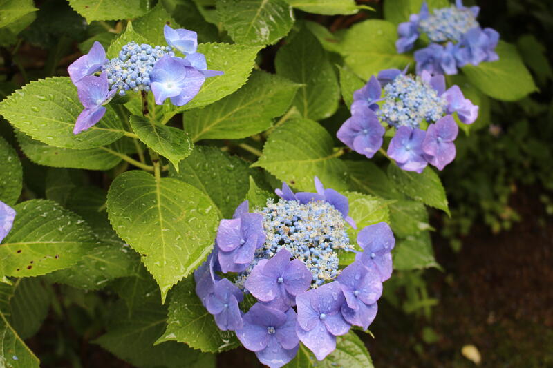 本日はあいにくの雨。校庭の紫陽花が雨に濡れて、美しく咲いています。