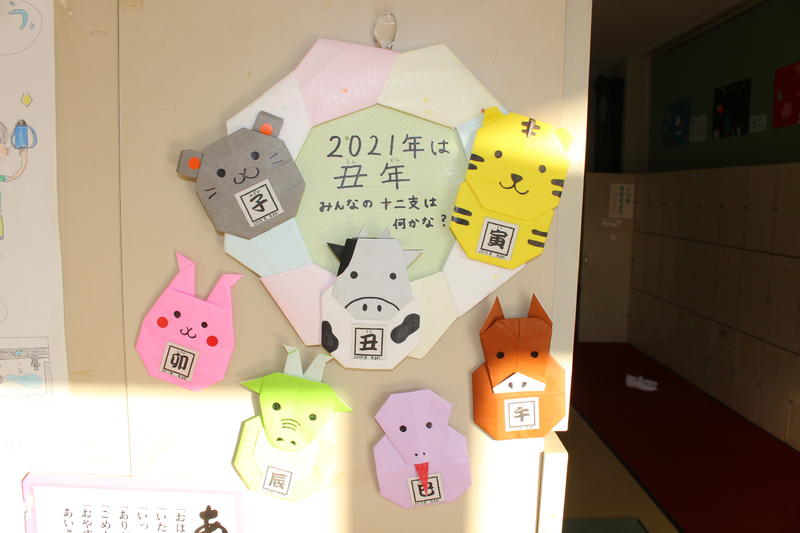 昇降口では、高野っ子を本校職員手作り「干支の飾り」が迎えてくれます。本日も、高野っ子は元気に登校してきてくれました。
