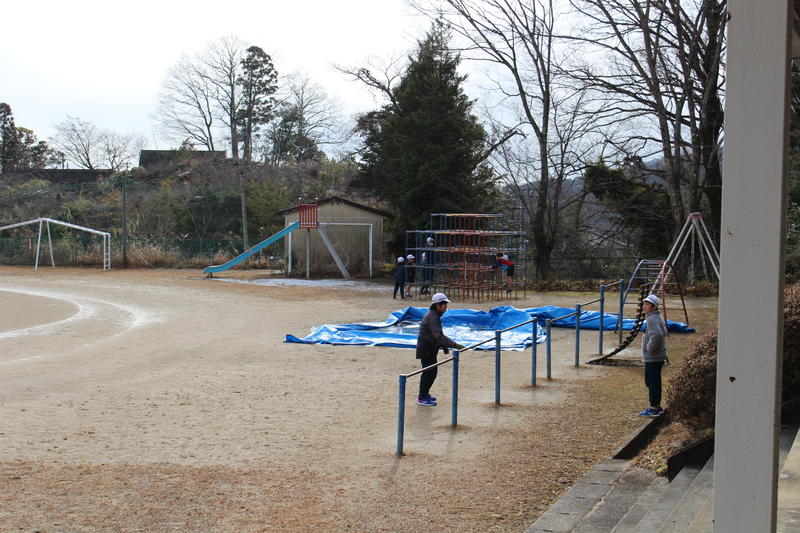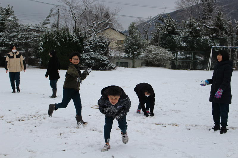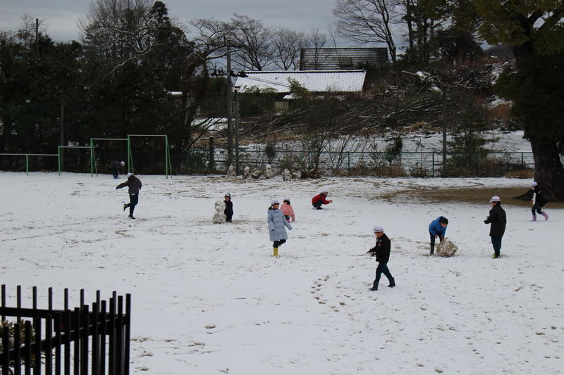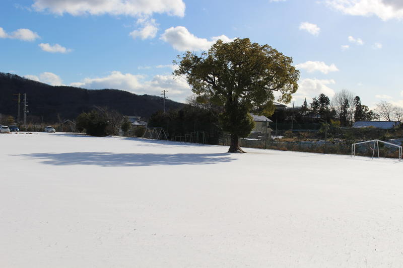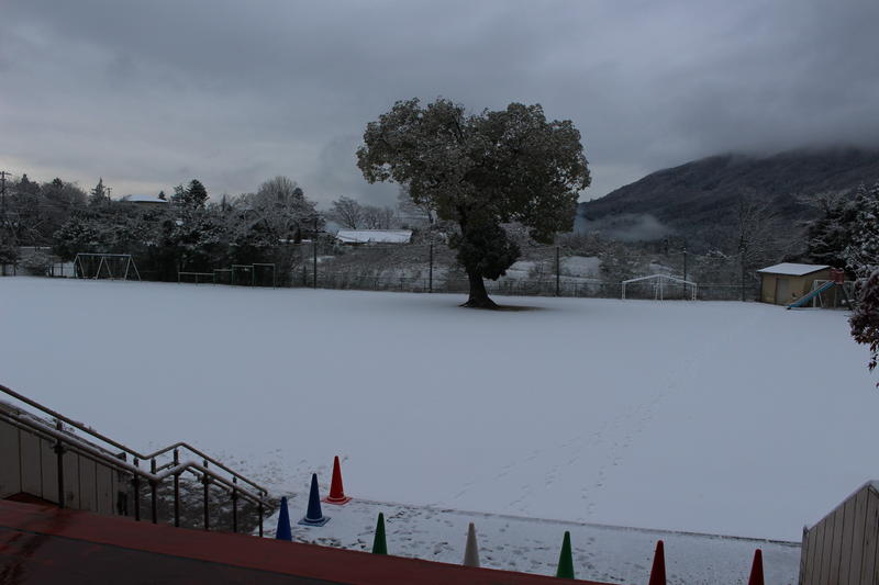 この寒波の影響で、高野にもまとまった雪が降りました。校庭も一面雪化粧です。