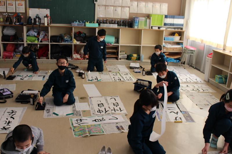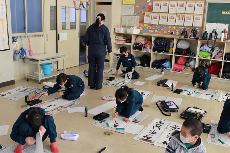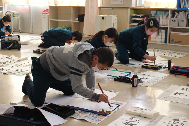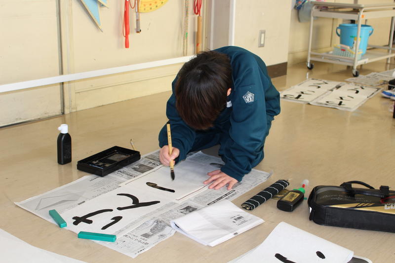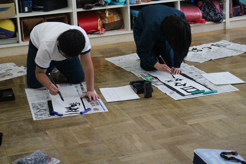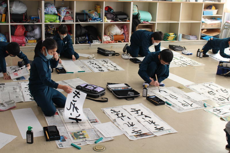 現在、本校は校内書き初め週間を実施しています。本日も、校内では書き初めが行われていました。