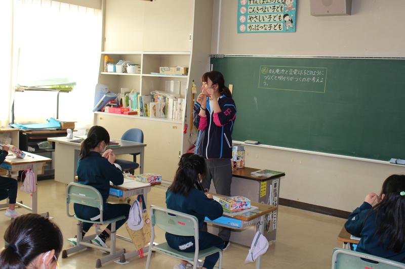 3年生は理科の学習です。豆電球や導線付ソケットを使い 、回路の学習をするようです。担当の先生が手順を説明すると、素早く作業する3年生。よく話が聞けるようになりました。成長を感じるワンシーンですね。