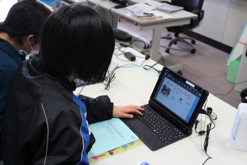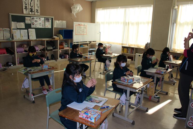4年生は外国語活動です。文房具の名前をビンゴゲームを通して学んでいました。