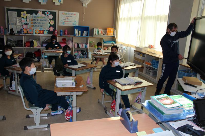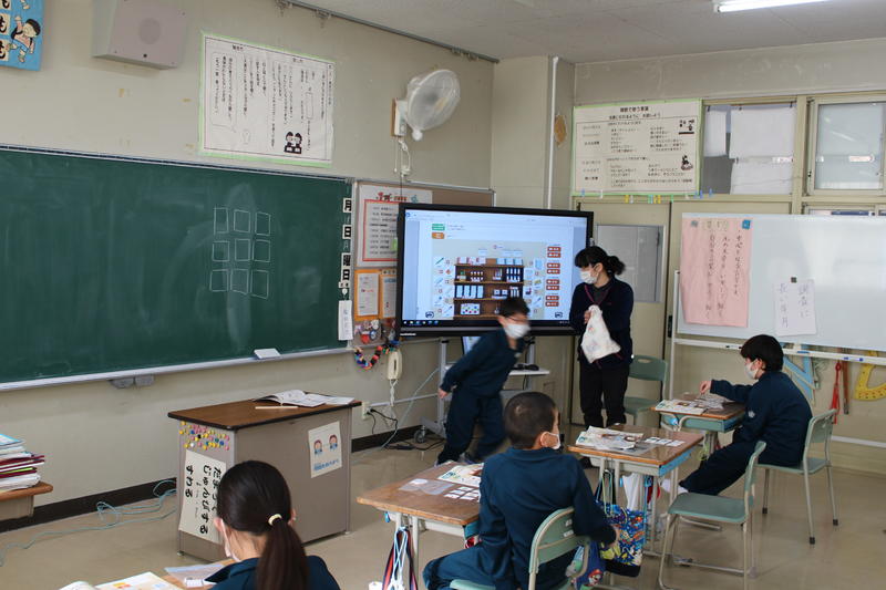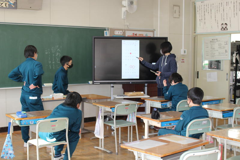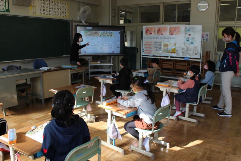1年生と2年生、6年生は大型モニターを活用して学習していました。