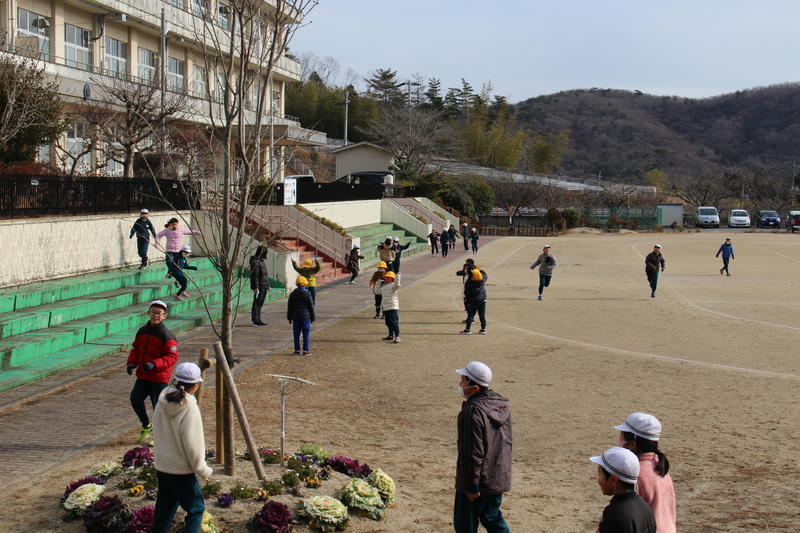気温の低い月曜日となりました。一部には雪が残る校庭ですが、高野っ子は元気一杯です。