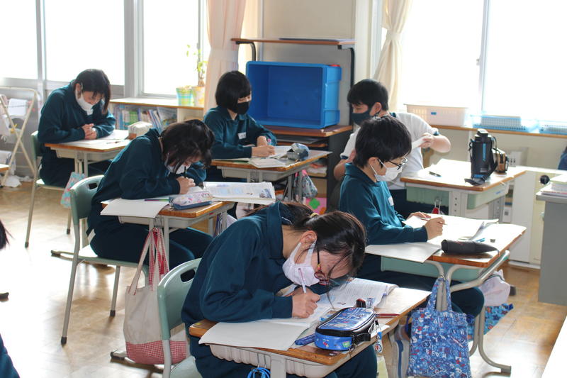 来週には校内に掲示をして、互いに鑑賞し合う予定です。どんな夢や目標が書かれているのか、乞うご期待です