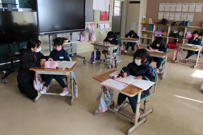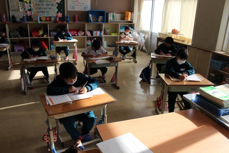 2年生は書写の学習です。これまで学習した漢字を、書写用の鉛筆で丁寧に書いています。「校長先生、これ、上手に書けたでしょ!」と嬉しそうに話しかけてくる2年生。自分の文字がきれいになったことを喜びながら、熱心に学習していました。