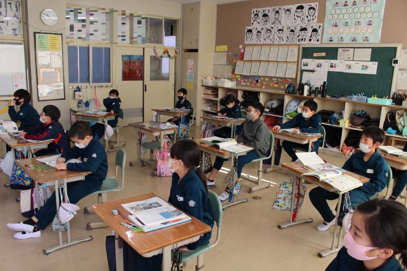 登校した高野っ子は、いつもと変わらず、元気に学習に取り組んでいました。