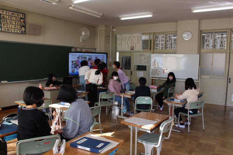 6年生の総合的な学習の時間では、自分自身の12年間を振り返っています。先生が過去に撮った写真をモニターに映し出すと、いろいろな記憶がよみがえり、子供たちは懐かしそうに話していました。