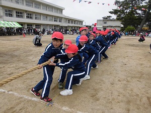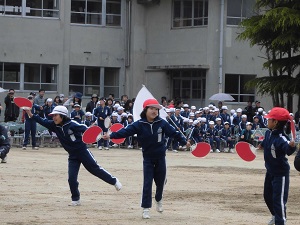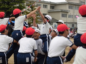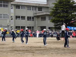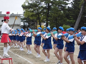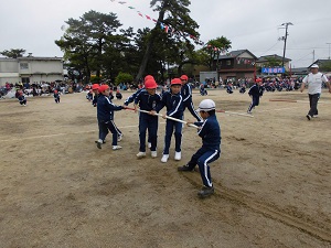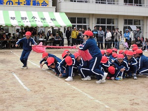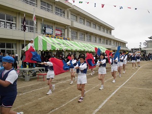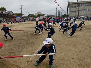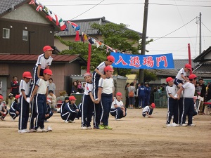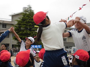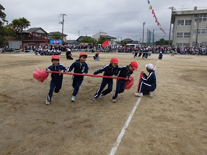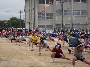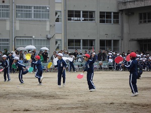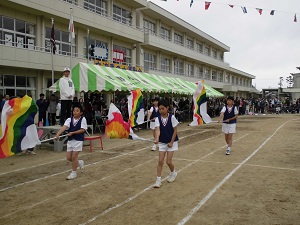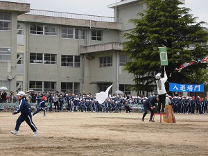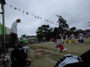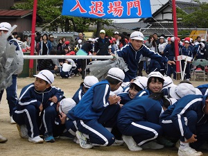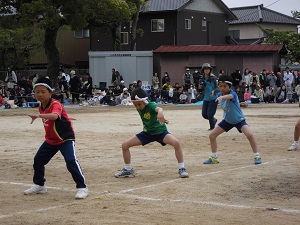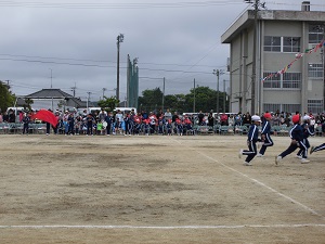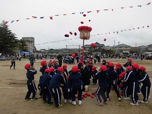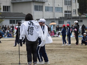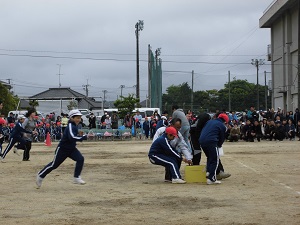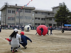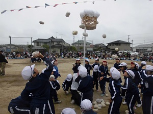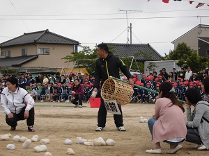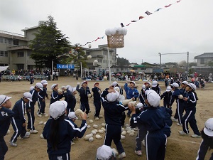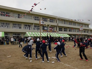 特別種目の地区対抗親子玉入れです。優勝は六十枚地区と赤沼地区の同点でした。