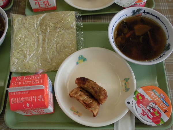 本日の給食メニューです。今日はソフトメンでした。