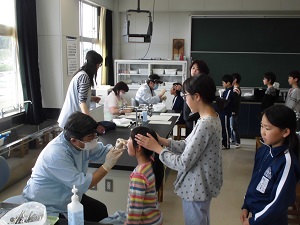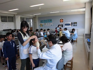 今週は午後から歯科検診が続いております。今日が最終日です。お二人の先生に検診していただいております。検診後に校長室で子どもたちの歯の状態をお聞きしています。やはり歯ブラシのブラッシングの上手下手によって歯垢付着があり、ないお子さんはとてもきれいだそうです。丁寧に正しくブラッシングしてもらいたいとのことでした。
